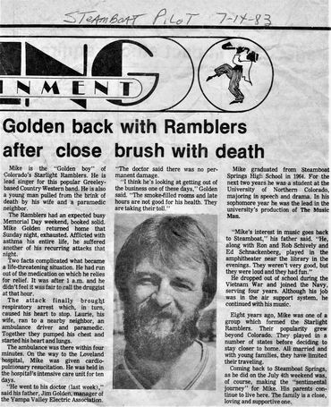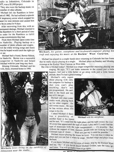 The Starlite Ramblers became one of the most notable and unique Country-Western genre bands in Colorado history. Included in the GALLERY below are interviews featuring the multitude of Michael's talents propelling The Starlite Ramblers into not only a top Colorado Band but beyond. The band performed under Michael’s direction until he suffered respiratory arrest and heart failure, whereas The Ramblers subsequently disbanded. After a brief rest and recovery period Michael formed the Colorado Band.