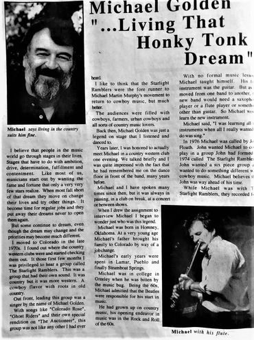 From the live stage to recording studios like Caribou Ranch, Michael was truly one of a kind. Golden's stories could make you laugh and cry about his days on and off stage. He was always a leader and crowd-drawing favorite, rising above the occasional neophyte, and typical issues in bands like drugs, alcohol, insecurities, narcissism, or competition. Michael instead was quick to point out the other talents and praise the band members, showcasing everyone else on stage with him. Those who knew and followed The Starlite Ramblers, including the other band members themselves, admit Michael was the reason they became so successful. Michael's enormous talent continued to draw thousands a week in to hear the band play during their peak notoriety. The Starlite Ramblers were inducted into the Colorado County Music Hall of Fame in August 2021, only five months before his death. Regardless, in the music business, the cream-of-the-crop rises to the top, recognized, adored, and well...Golden was always golden, standing above the crowd. Michael regularly had fans recognizing him off-stage, which meant a great deal to him to have the opportunity to personally talk with them. They would excitedly tell him how much his music meant to them or that it changed their lives.